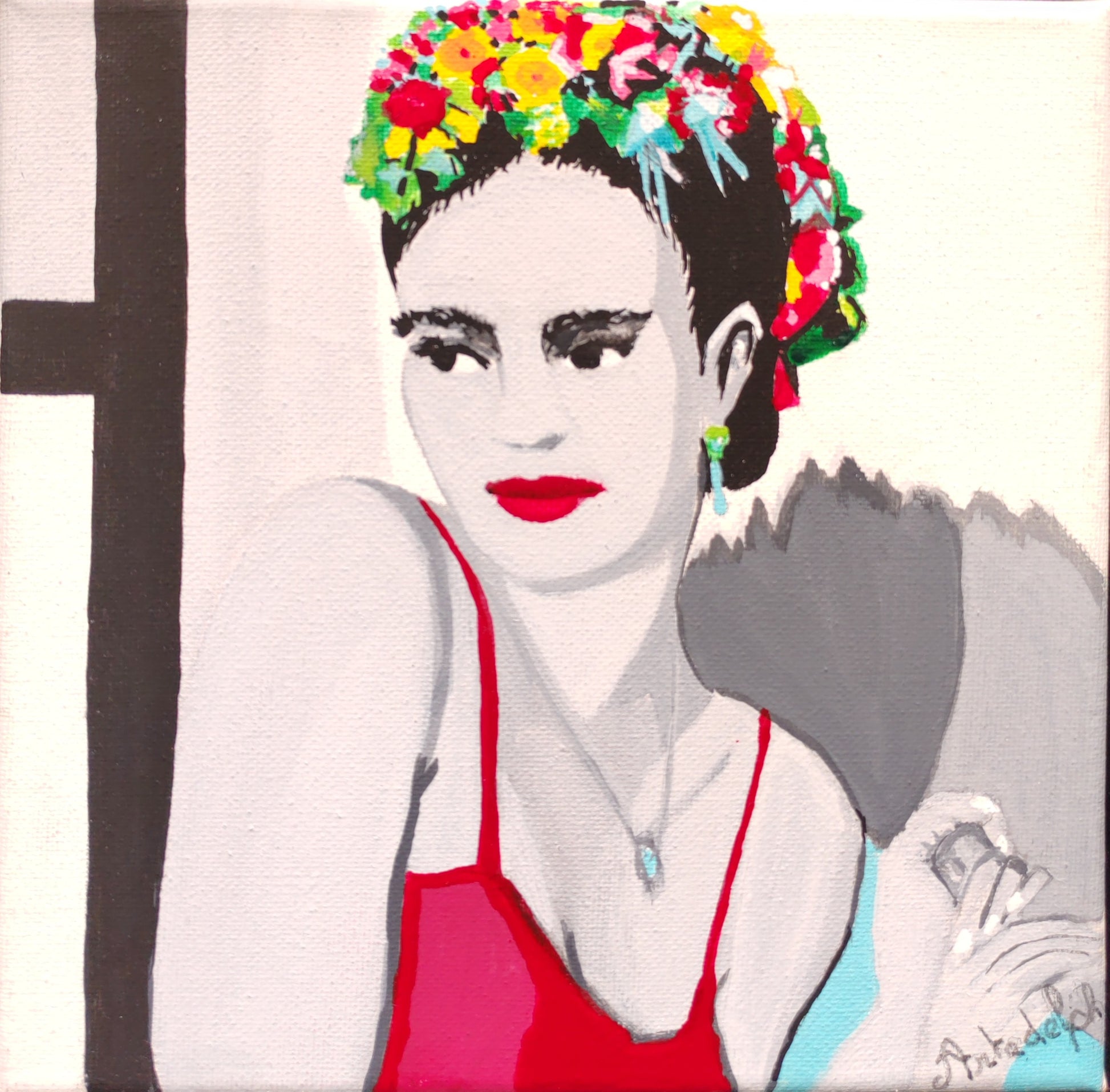 Il s'agit d'une grande peintre mexicaine dont j'admire le courage et la force face aux différentes adversités qu'elle a rencontré dans sa vie. Atteinte d'une maladie puis victime d'un accident, elle a toujours été prisonnière d'un corps souffrant et pourtant elle a toujours su relever la tête et n'a cessé de peindre jusqu'à la fin de sa vie.